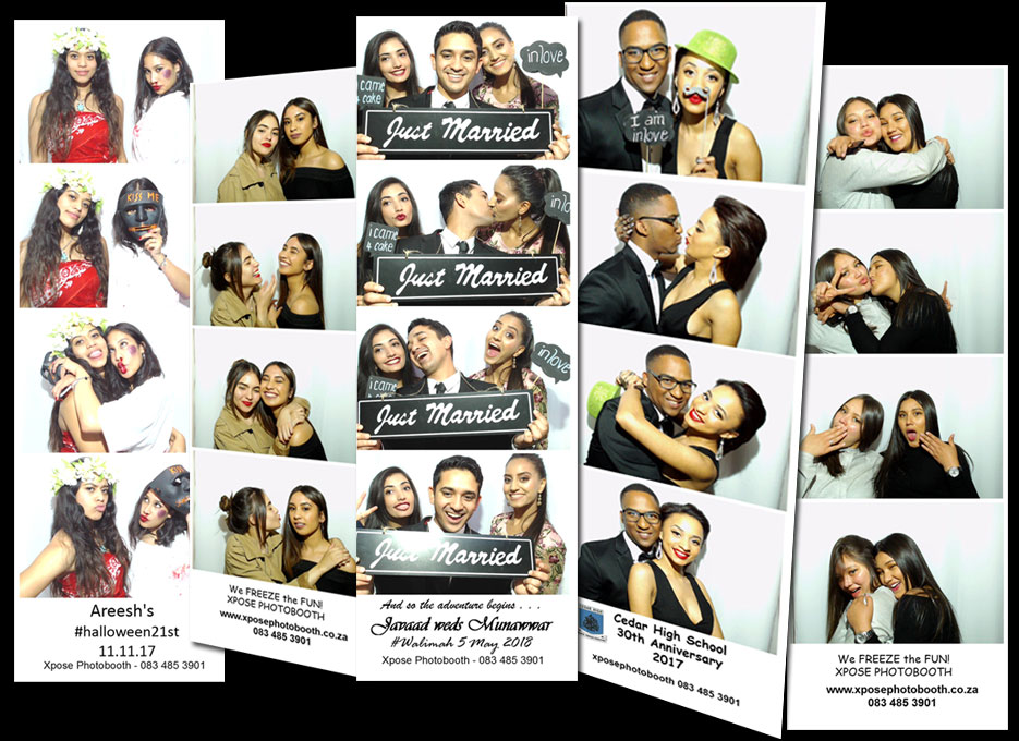 2 strips printed out immediately after the poses (one strip for guests and other strip for guestbook).